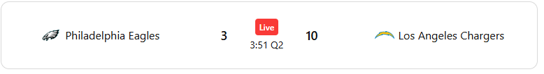 • Match: Los Angeles Chargers vs Philadelphia Eagles